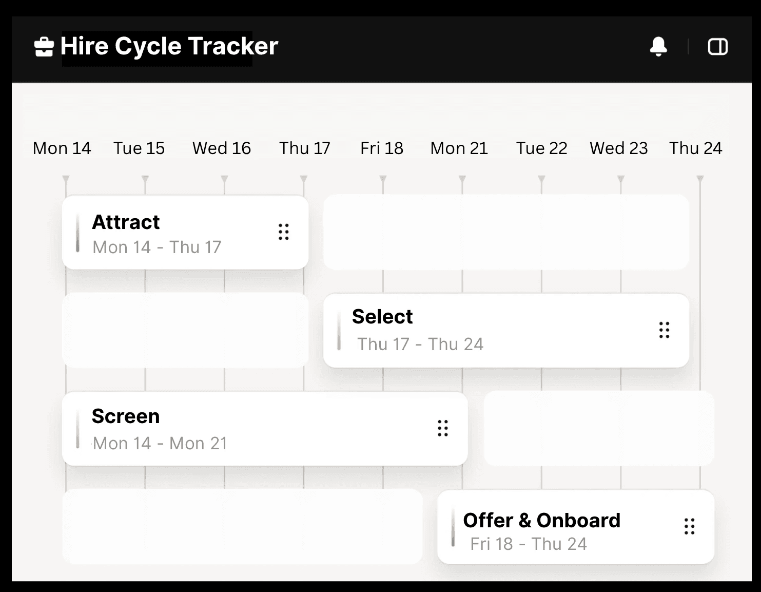 Every requisition, stage, and deadline in one color-coded lane so nothing slips (yes, even that “needed-yesterday” hire).